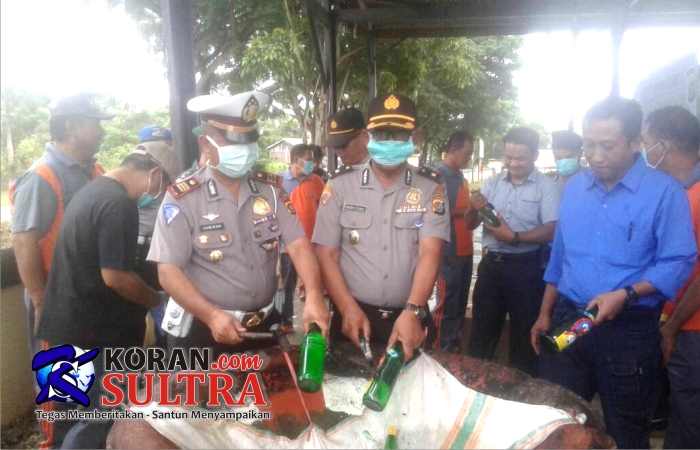 Unaaha, Koran Sultra – Kepolisian Resort Konawe melakukan Pemusnahan Barang Bukti Minuman Keras (Niras) hasil Operasi Cipta Kondisi 2017 yang dilakukan Jajarannya.