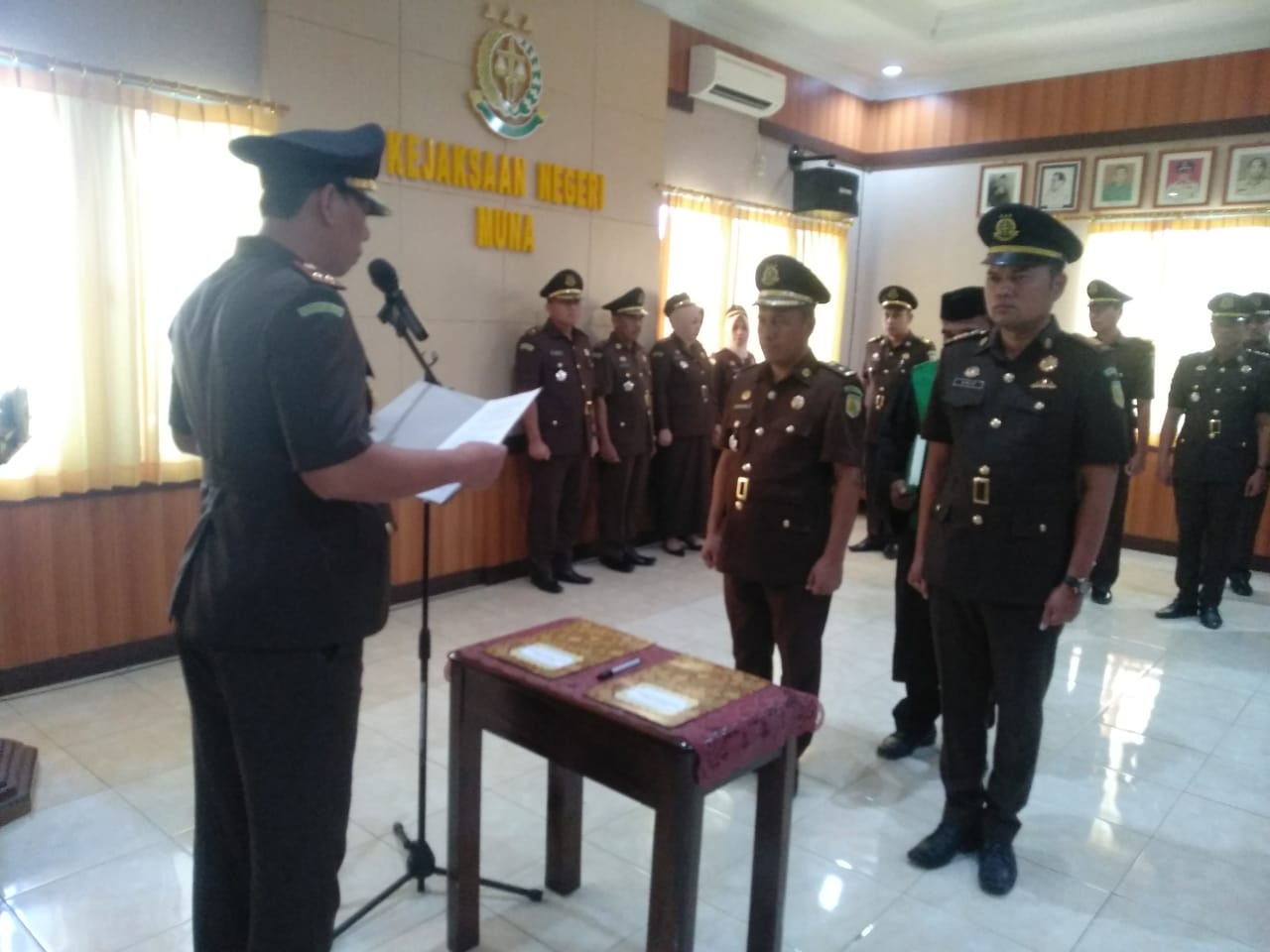 Husni Fahmi Kepala Kejari Muna dalam sambutannya, memberikan apresiasi kepada pejabat lama La Ode Abdul Sofyan atas dedikasinya selama ini sebagai kasi Intel Kejari Muna, bertugas selama 4 tahun.