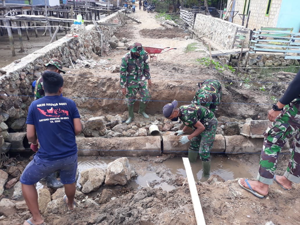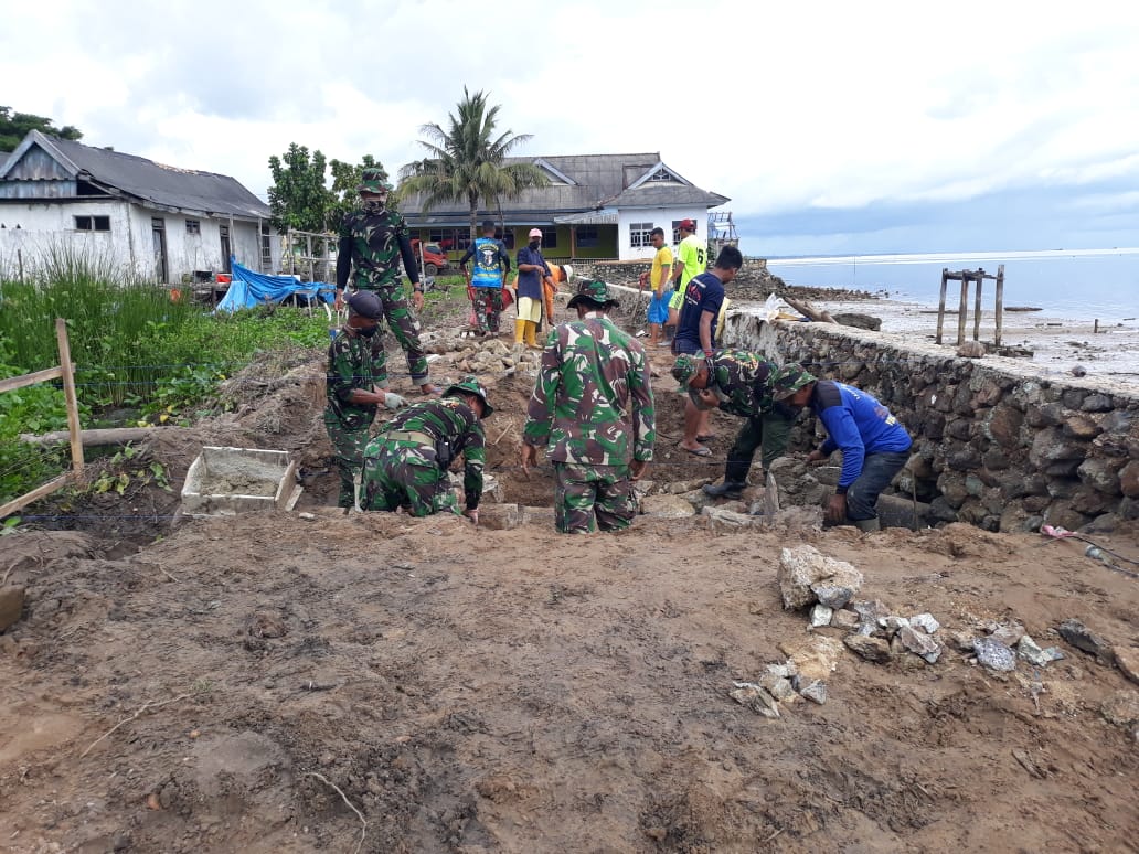 Kolaka, KoranSultra.com – Danramil-07 Kecamatan Watubangga Kabupaten Kolaka Sulawesi Tenggara, Kapten Inf Mustafa, Kodim 1412 Kolaka, Selaku tim asistensi Pra Tentara (TNI) Manunggal Membangun Desa (TMMD) melihat dari dekat pelaksanaan kegiatan para anggota Satgas pra TMMD ke 108 bersama warga, mulai dari target RTLH, Talud serta gorong-gorong untuk membuat jalan di kampung Bajo Kelurahan Anaiwoi Kecamatan Tanggetada Kabupaten Kolaka Provinsi Sulawesi Tenggara, Jumat (19/06/2020).
