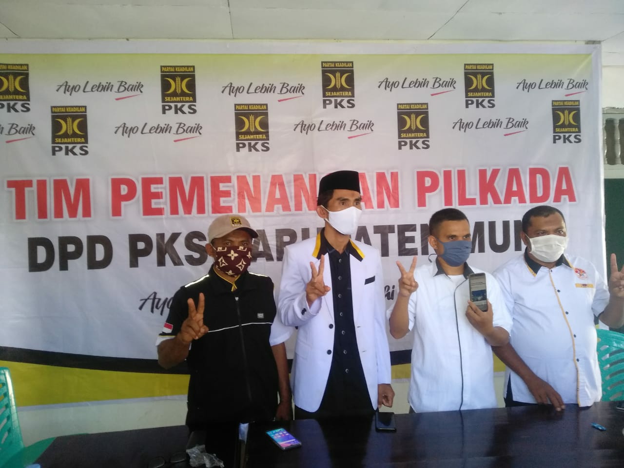 Jafaruddin Ketua DPD Partai Keadilan Sejahtera (PKS) Kabupaten Muna didampingi Dahira Ketua Bapilu Muna, Milwan ketua bidang kaderisasi dan Hamudin Sekretaris Umum (SKUM) PKS, Rabu (5/8/2020).