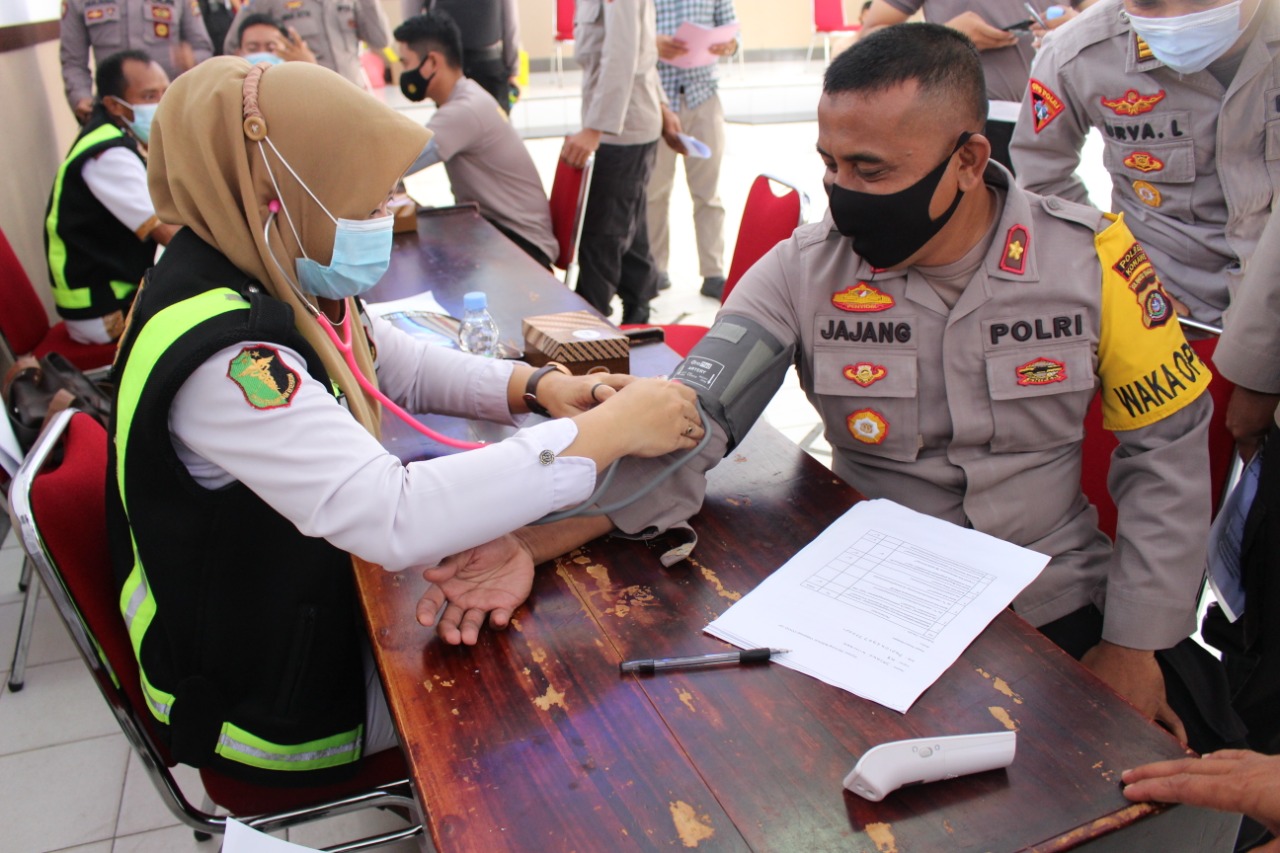 Sebelum mengikuti vaksin, personil di screening terlebih dahulu oleh petugas medis, dengan tujuan memastikan orang yang akan divaksin sudah siap dan kondisilnya dalam keadaan sehat.
