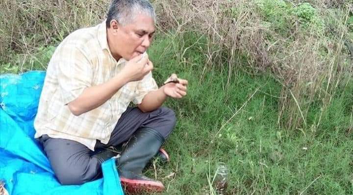 Dalam foto itu juga menunjukan KSK duduk beralaskan terpal sambil menikmati ikan rawa yang di panggang hasil pancingannya, ini menunjukan kesederhanaan seorang Kery Saiful Konggoasa.