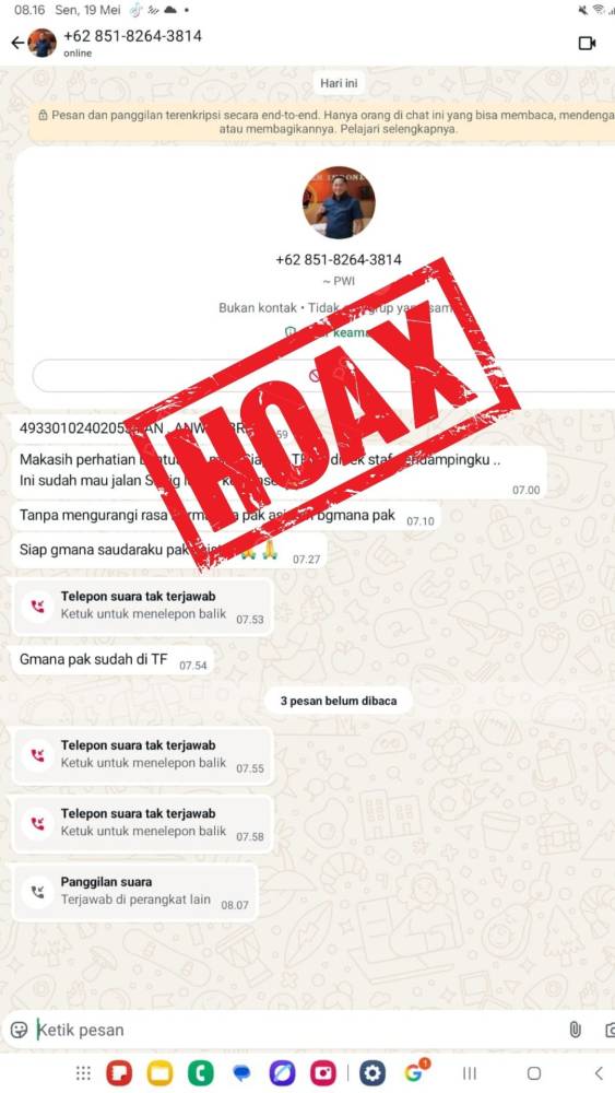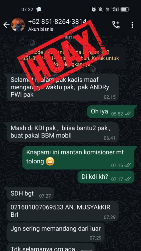 Informasi pencatutan nama organisasi dan namaku ini sudah saya terima sejak kemarin pagi dan sudah saya buat informasi penipuan ini melalui pesan pribadi dan laman medsosku, lanjutnya. “Saya juga sejak semalam sudah membuat rilis resmi terkait insiden penipuan ini yang sudah ada korbannya mengirim uang, dan itu sudah terbit di beberapa media online di Sultra.” Katanya