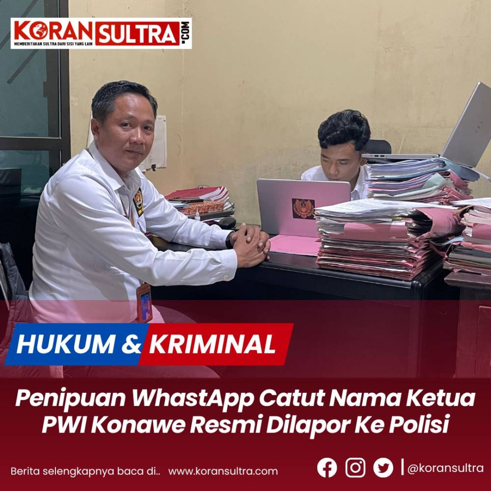 Unaaha, Koransultra.com – Ketua Persatuan Wartawan Indonesia (PWI) Kabupaten Konawe resmi melaporkan ke Polisi terkait kasus penipuan yang mencatut foto, nama dan Organisasi PWI yang meminta uang kesejumlah pejabat lingkup Kabupaten Konawe. Demikian dikatakan Andriansyah Siregar, Senin 19/05/2025.