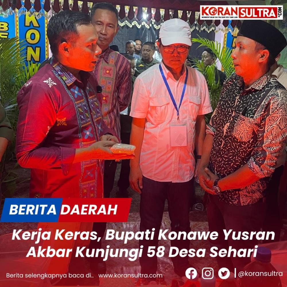 Bak ceritera negeri seribu satu malam, Bupati Konawe H. Yusran Akbar malah membuat terobosan yang spektakuler dengan melakukan kunjungan ke 291 desa ini dalam kurun waktu lima hari saja, “Semua Desa Desa ini akan kami kunjungi, melihat dari dekat potensi potensi yang ada di desa itu, kemajuan pembangunannya, serta produk unggulan yang menjadi andalan,” demikian dikatakan Bupati Konawe saat diwawancarai awak media, Kamis 06/11/2025.