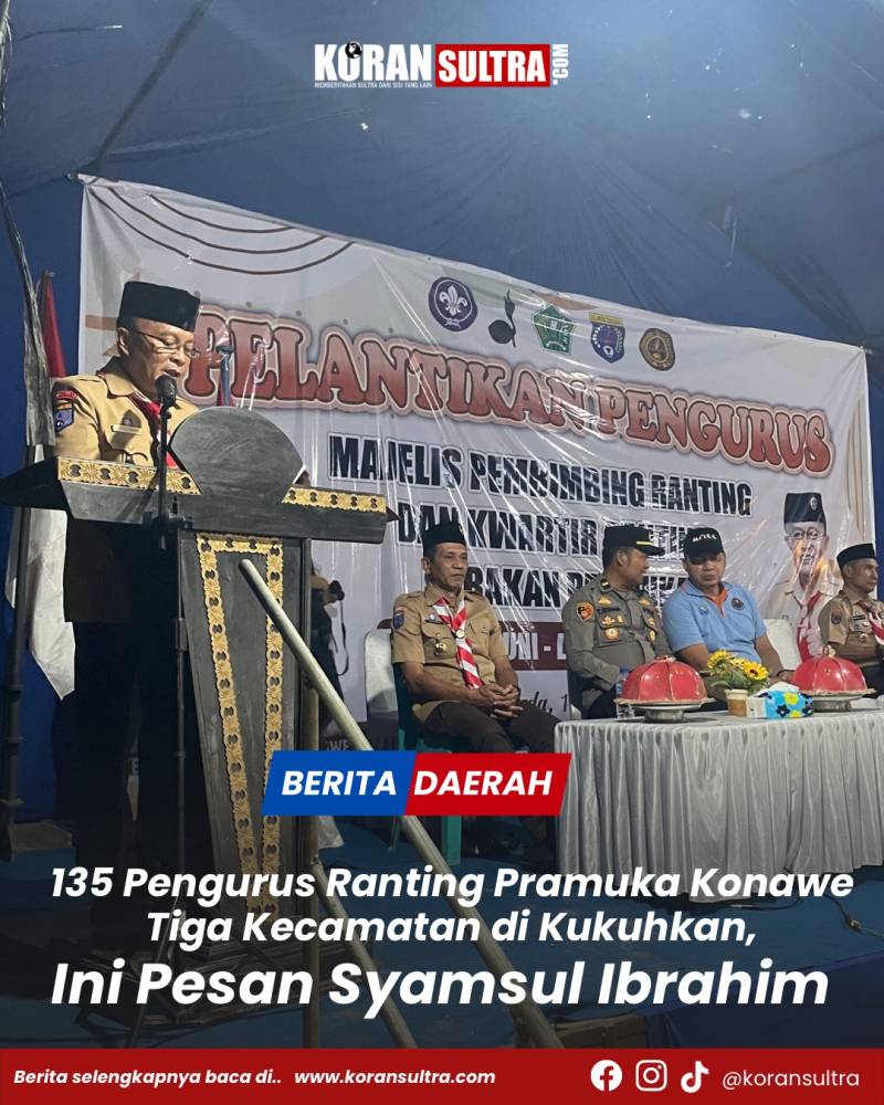 Konawe, Koransultra.com – Kwartir Cabang (Kwarcab) Gerakan Pramuka Konawe resmi mengukuhkan Pengurus Majelis Pembimbing (Mabiran) serta Kwartir Ranting (Kwaran) Kecamatan Padangguni, Latoma, dan Asinua Tua untuk masa bakti 2026–2029, Sabtu malam (17/1/2026).