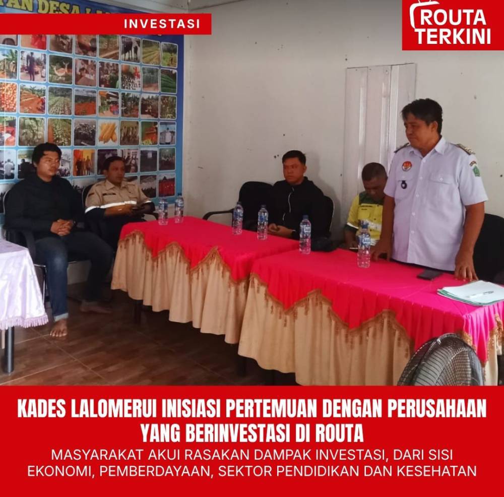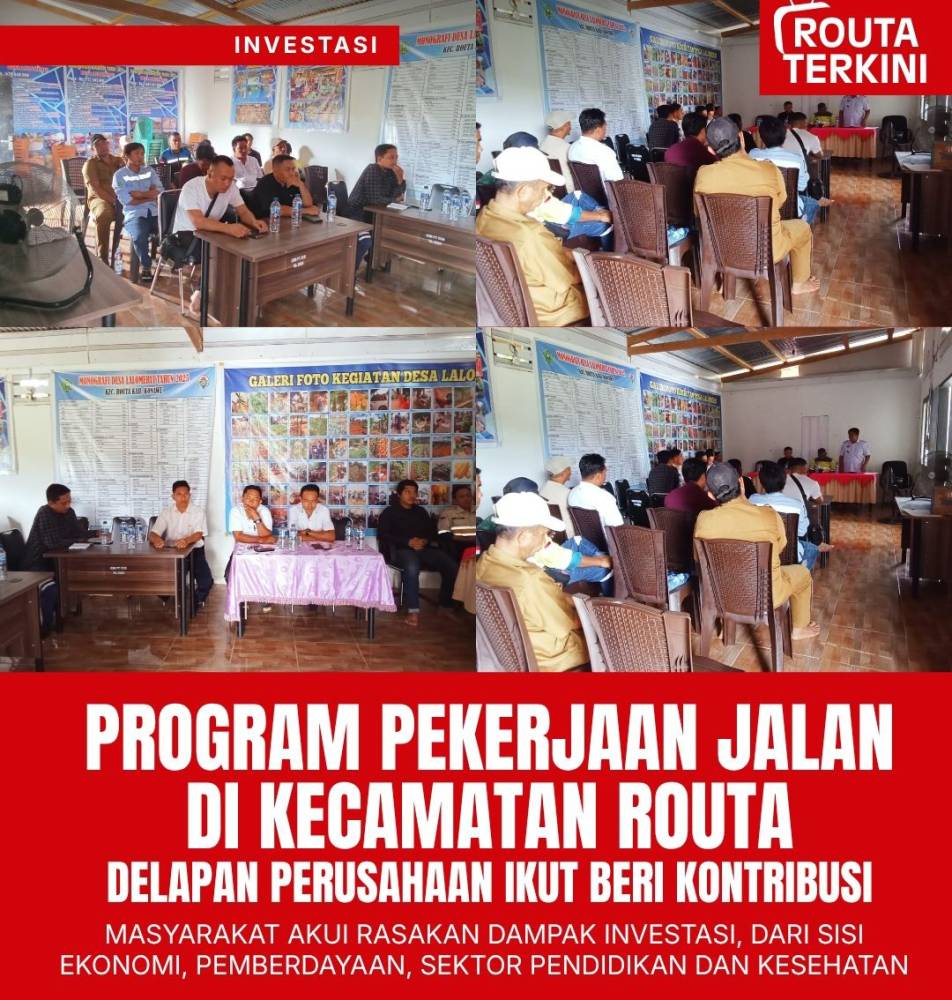 Ia juga menjelaskan bahwa rencana pembangunan jalan dari Desa Lalomerui hingga Kelurahan Routa merupakan hasil rapat yang dilakukan beberapa waktu lalu. Pemerintah desa berinisiatif mengajak perusahaan-perusahaan yang berinvestasi di Kecamatan Routa untuk bersinergi dalam pembangunan infrastruktur jalan yang dimanfaatkan bersama oleh masyarakat.