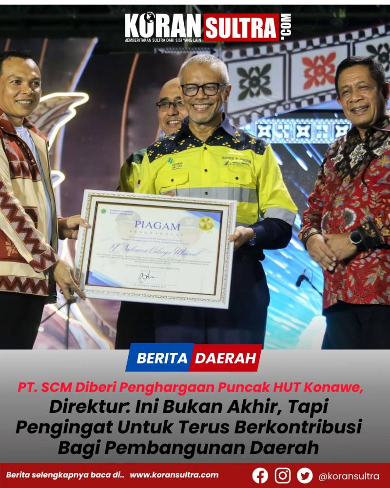 Acara ini turut dihadiri Wakil Gubernur Sulawesi Tenggara, Hugua, jajaran pejabat Pemkab Konawe, serta tokoh masyarakat. Dalam kesempatan itu, Pemkab Konawe secara terbuka mengakui kontribusi nyata PT SCM yang dinilai berdampak langsung pada peningkatan kesejahteraan warga dan keberlanjutan pembangunan daerah.