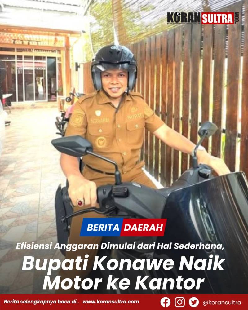 Unaaha, Koransultra.com — Bupati Konawe, Yusran Akbar, S.T., terus mendorong penerapan efisiensi anggaran melalui langkah sederhana namun berdampak nyata. Salah satunya dengan menggunakan sepeda motor sebagai sarana transportasi menuju kantor.